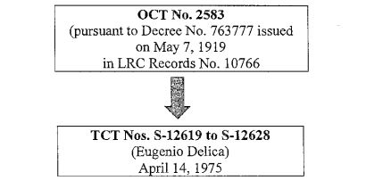 While Delica claimed that he acquired his titles from Juan Posadas, et al., the RTC noted that Delica inherited these properties from spouses Venancio Delica and Irene Contillon.32 The RTC observed that the Delica titles were issued on April 14, 1975 yet the form on which these titles were entered was issued to Makati Register of Deeds on July 30, 1975. Further, the microfilm copies of TCT Nos. S-12619 to S-12628 with the Makati Register of Deeds over a 3,179-square meter land were issued not to Delica but to Palm Investment Incorporated on August 22, 1975. The land is located at Sucat, Muntinlupa covered by OCT No. 2583 issued on May 7, 1919 pursuant to Decree No. 76377 in Record No. 10766.33