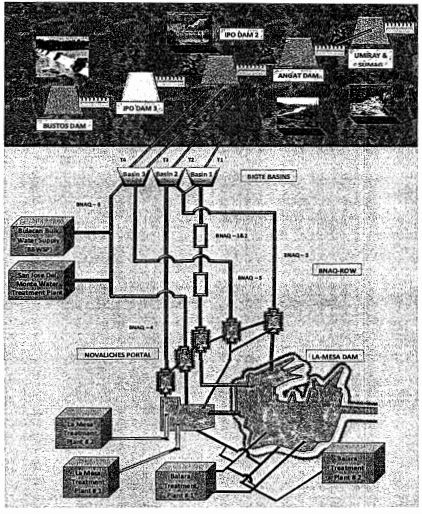 As shown in the diagram,11 Angat Dam is only one of several dams that form part of Metro Manila's water supply and sewerage system. These dams are located within the jurisdiction of different local government units (LGUs). The main sources of Metro Manila's water supply are the Angat, Ipo, and La Mesa dams.12 While Angat and Ipo dams are located in the Province of Bulacan, La Mesa is located in Quezon City. A portion of the water funneled to the Angat and Ipo dams is further sourced from Umiray River, which is located in the Province of Quezon.13 Moreover, as the Province of Bulacan acknowledges in its Comment,14 portions of the water stored in Angat Dam similarly flow from watershed areas located in the provinces of Quezon, Nueva Ecija, and Rizal.15
